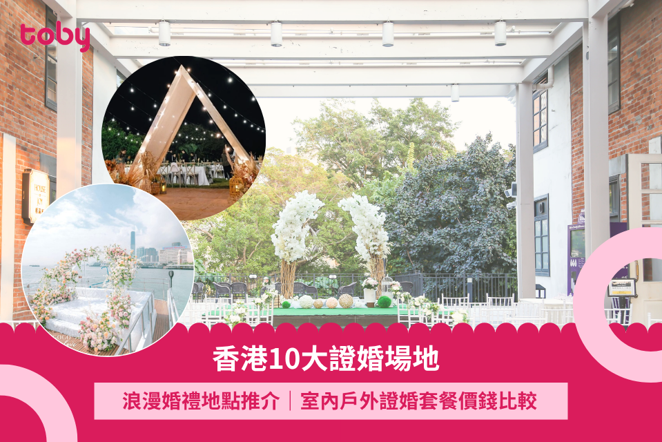 結婚是人生其中一個最重要的時刻,除了挑選婚紗、籌備婚宴外,如何挑選證婚場地也不容少看!無論想舉行簡約莊重的室內儀式,還是夢幻浪漫的戶外婚禮,場地的氛圍與配套都相當重要。想了解證婚場地類型、租用流程、收費差異?不用煩惱!Toby 為你整理10大香港熱門證婚場地,幫你輕鬆找到最理想的地方,見證人生中最動人的一刻。